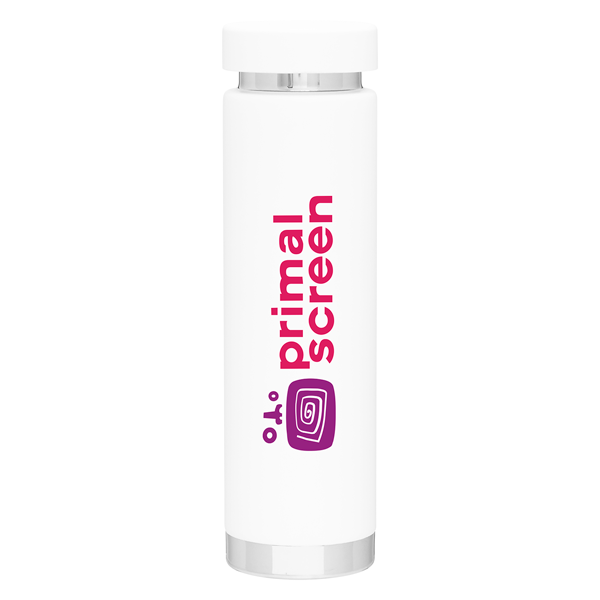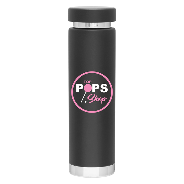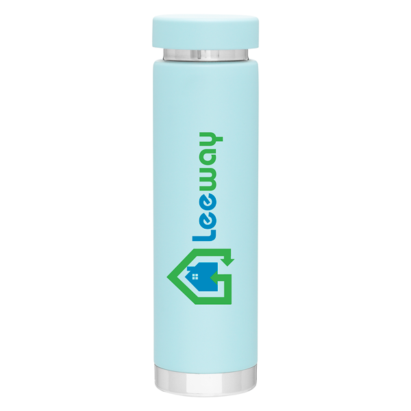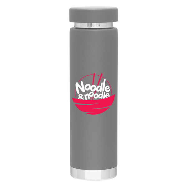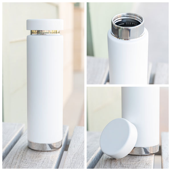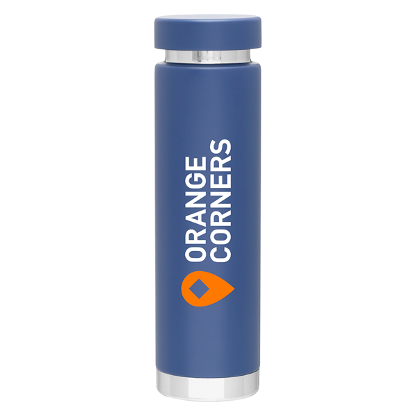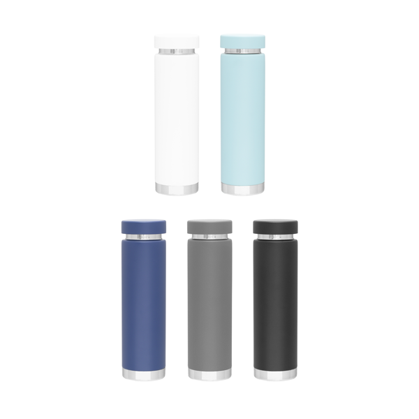 16.9 oz double wall 18/8 stainless steel thermal bottle with copper vacuum insulation, threaded insulated stainless steel lid, high polish rim and base, and powder coated finish · gift box included.