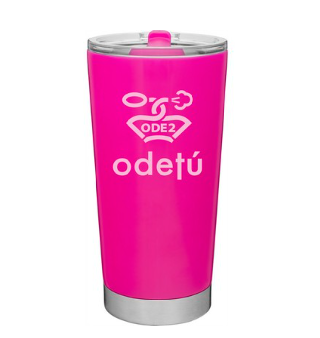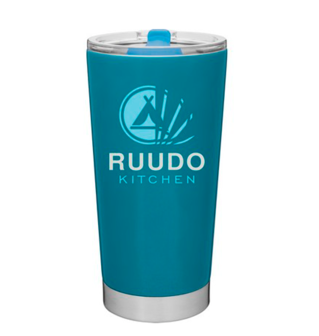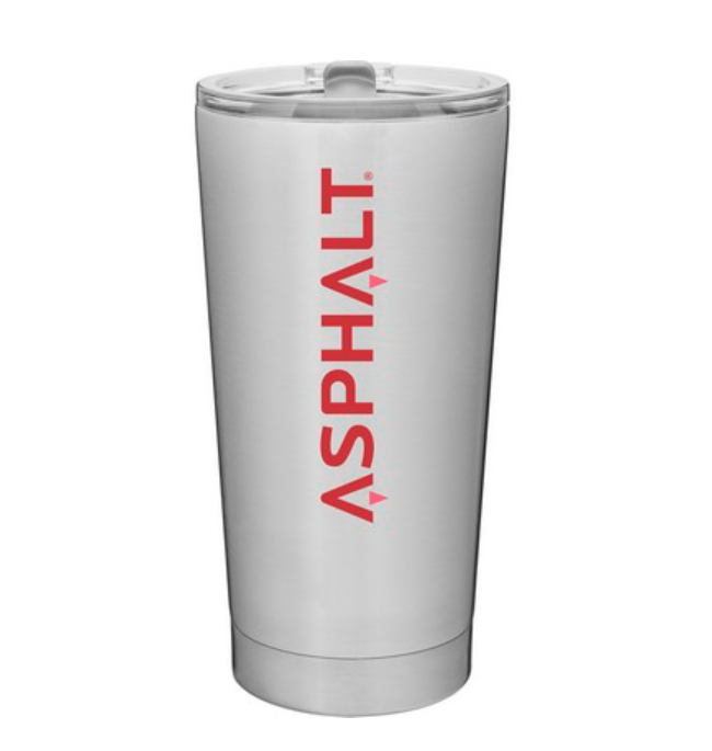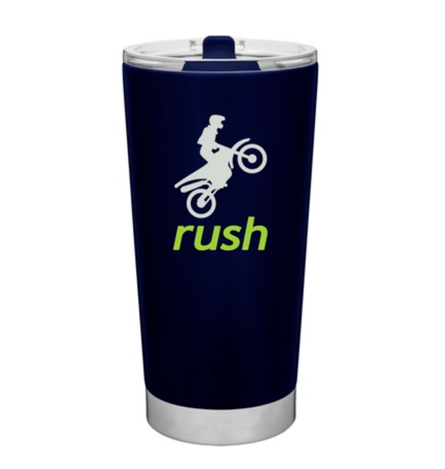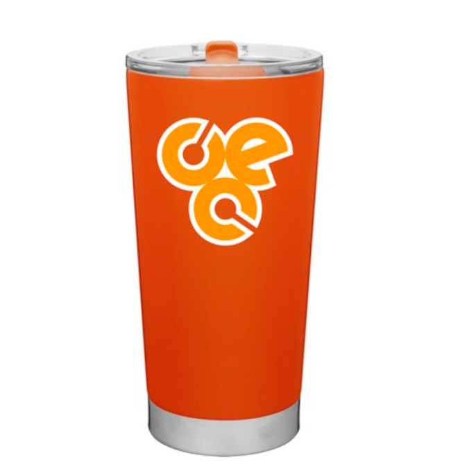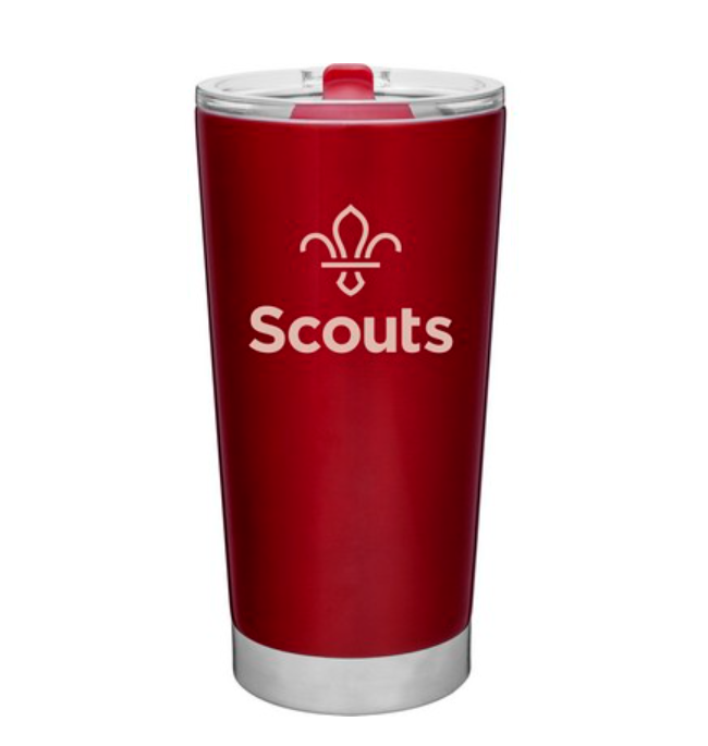 20 oz double wall 18/8 stainless steel thermal tumbler with vacuum insulation, and clear acrylic push-on swivel lid. Individual gift box. Hand wash recommended. Do not microwave.
