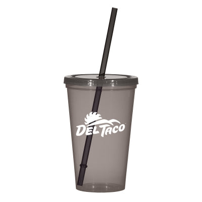 Single-Wall Polypropylene Cup. Matching Snap-On Lid And 9" Straw. Made In The USA. Meets FDA Requirements. BPA Free. Hand Wash Recommended.