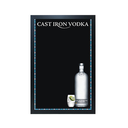 Try our new dry erase boards with your choice of a black or white acrylic backer behind a clear acrylic front plate that provides a 3-dimensional look – a fresh change to the standard white board! • Smooth surface and Sintra frame handle daily use with ease. • Great for restaurants, small businesses, & advertising. • LED writing boards features multi colored light effects at the push of a button! • Includes remote to control lighting. • Mounting hardware included for easy hanging.