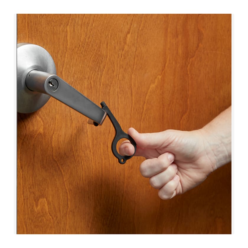 The Pacific 26oz Aluminum Sports Bottle is recyclable and features single-wall construction a twist-on lid and includes a no contact tool attached to the lid. This keychain tool helps to avoid contact with dirty contaminated surfaces. This multi-purpose tool can be used when opening doors pressing buttons using the ATM and carrying shopping bags. Made from reinforced nylon. Hook shape designed to grab a handle and open doors. Rubber stylus can be used on signature pads ATMs and cellphones or tab.