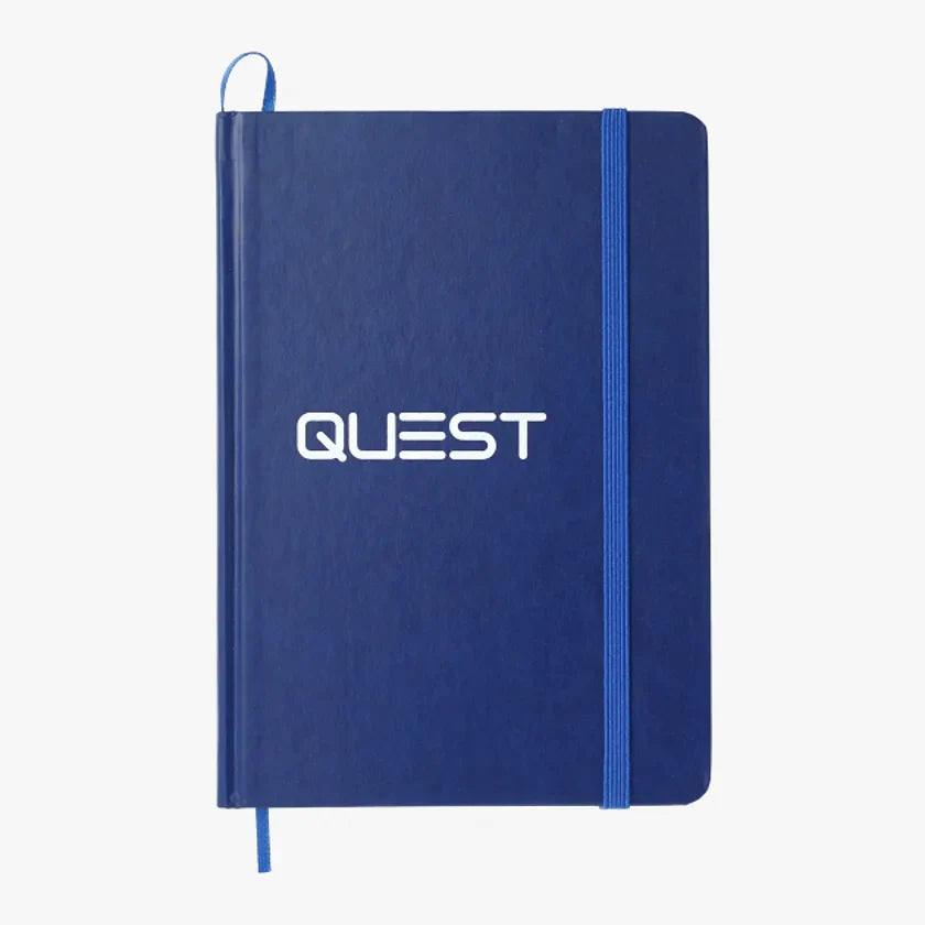 The 5" x 7" Snap Elastic Closure Notebook is an 80 ruled page notebook with a matching color ribbon bookmark.