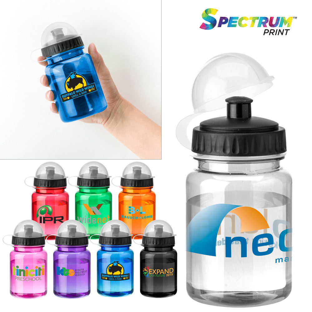 The 5K straight-wall mini water bottle offers no-fuss refreshment on-the-go! 12 Oz. translucent bottle with flip top lid for easy drinking. *BPA Free*.