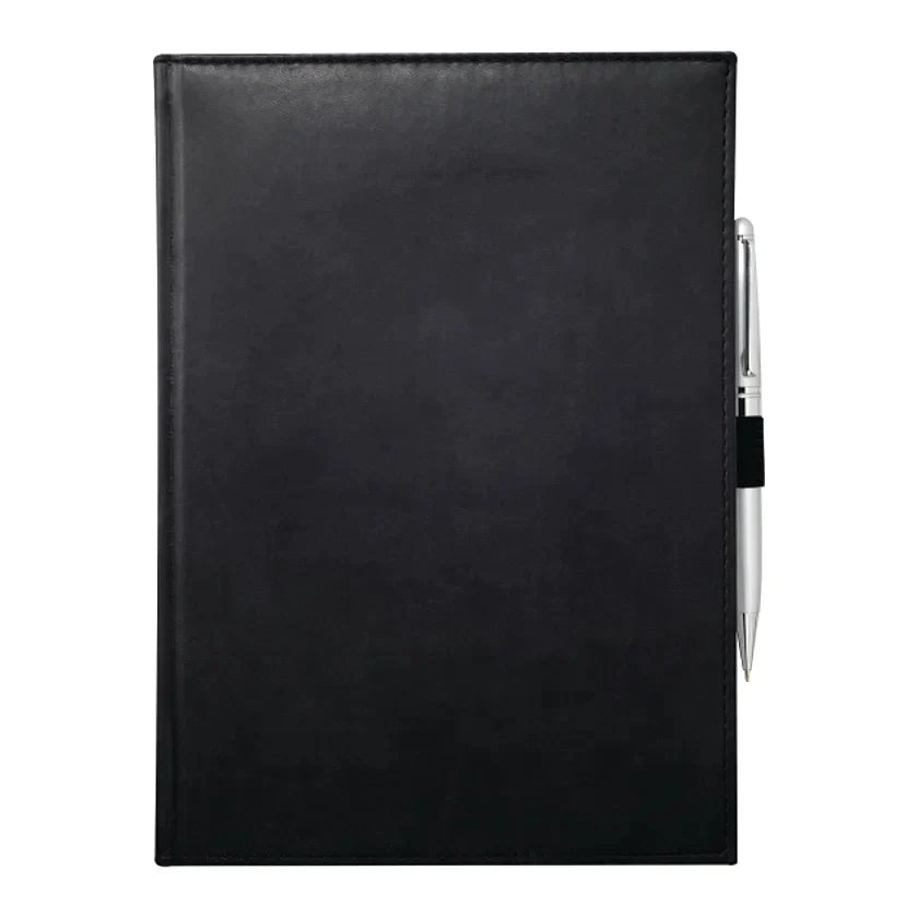 The 7" x 10" Pedova Large Bound JournalBook is a hardcover bound journal featuring Italian UltraHyde construction. It contains 125 sheets of white lined paper with built-in ribbon page markers to help hold your place between uses.