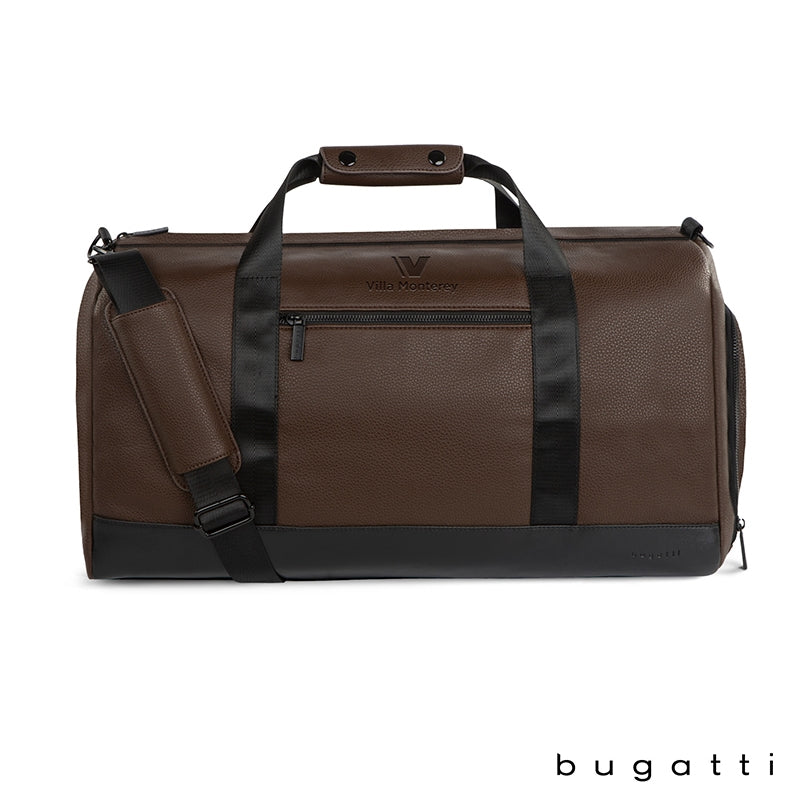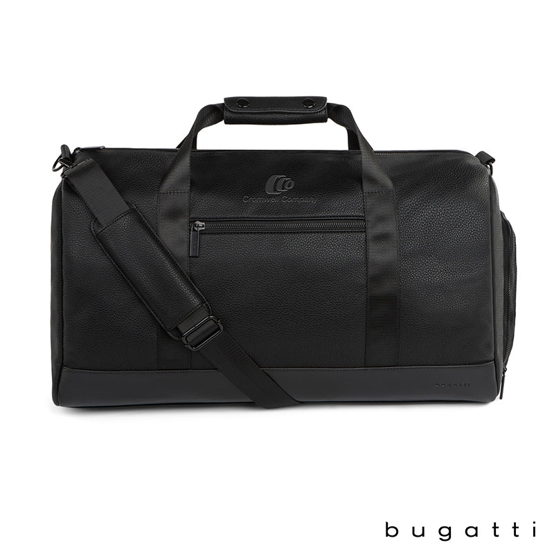 The Central Duffel Bag also has reinforced carry handles, a backside grab handle that doubles as a trolley strap and a removable and adjustable strap for carrying over the shoulder or crossbody style. This bag comes with Bugatti zipper pullers and a one-year limited warranty. Please note that smaller font lettering may not deboss legibly on the textured finish.