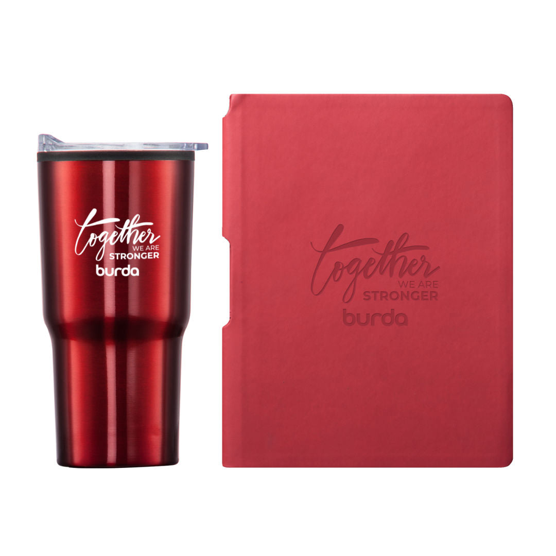 Eccolo® Groove Journal/Bexley Tumbler Gift Set includes...TBC408 - Eccolo® Groove Journal- Vegan leather, flexible cover- 192 ivory, lined, Acid-Free, 80 gram pages- Pen holder in spineD101 - Bexley Tumbler 20oz- Stainless steel travel tumbler with thermoplastic liner- Double wall body with clear acrylic push-on lid- Extra-secure lid seal with easy thumb-slide sip opening.