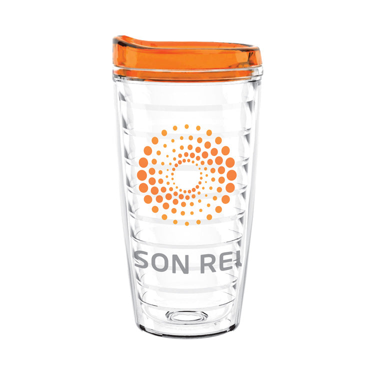 Snap & Sip! Direct drink and sip smart lid 16oz. tumbler. Double wall; SAN material. Made in USA.
