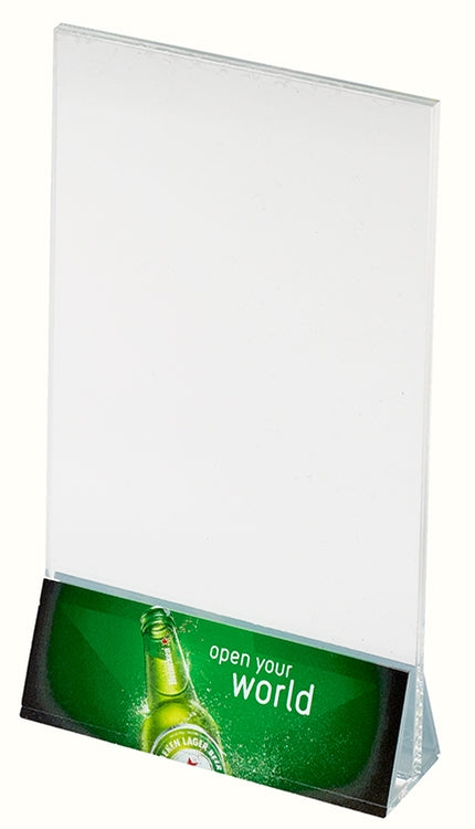 Table Talkers will “speak” to customers everyday to get your message through. Rugged clear plastic that holds your changeable ad. Daily specials, promotions and more, plus your 4 color imprint at the bottom on each side and each side can be a different ad. Different ad requires a 2nd set up charge. Create interest, drive sales and