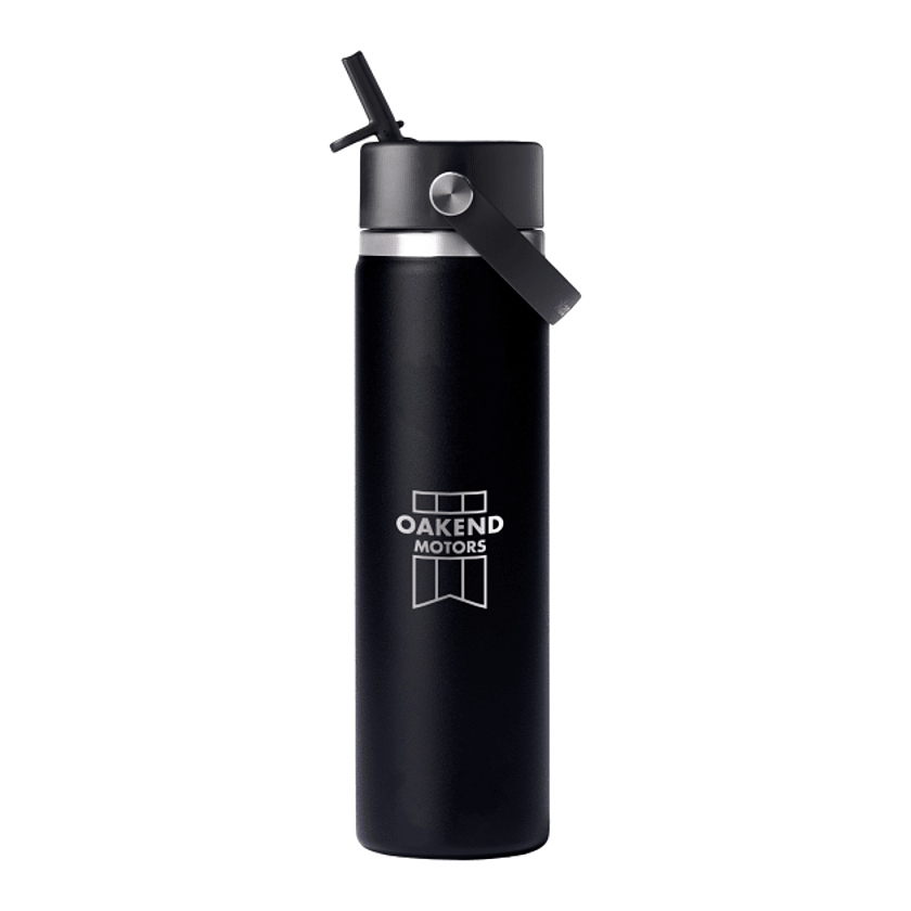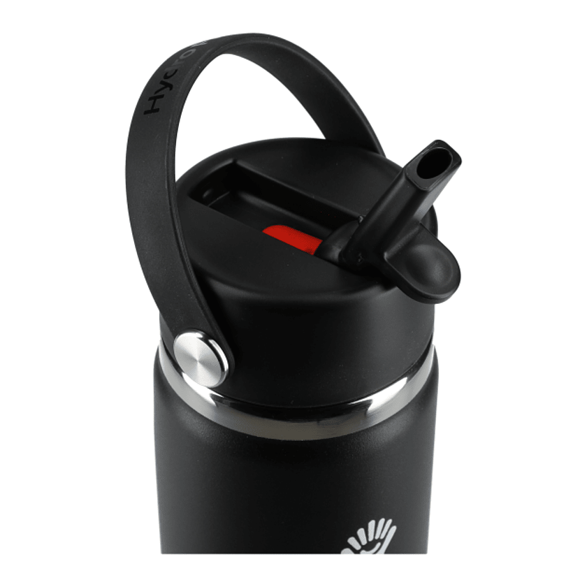A 24oz Wide Mouth water bottle with Hydro Flask's leakproof Flex Straw Cap—easy to fill, easy to drink. Open it up, add your ice, and flip to sip. TempShield® double-wall vacuum insulation keeps drinks cold up to 24 hours. Insulated Flex Straw Cap is leakproof when closed. Made with 18/8 pro-grade stainless steel for durability, pure taste and no flavor transfer. Wide Mouth opening is ice-cube friendly. Color Last™ powder coat stays clean and bright. BPA-Free. Flex Straw Cap not intended for use with hot liquids. 24oz. Hand Wash Only.