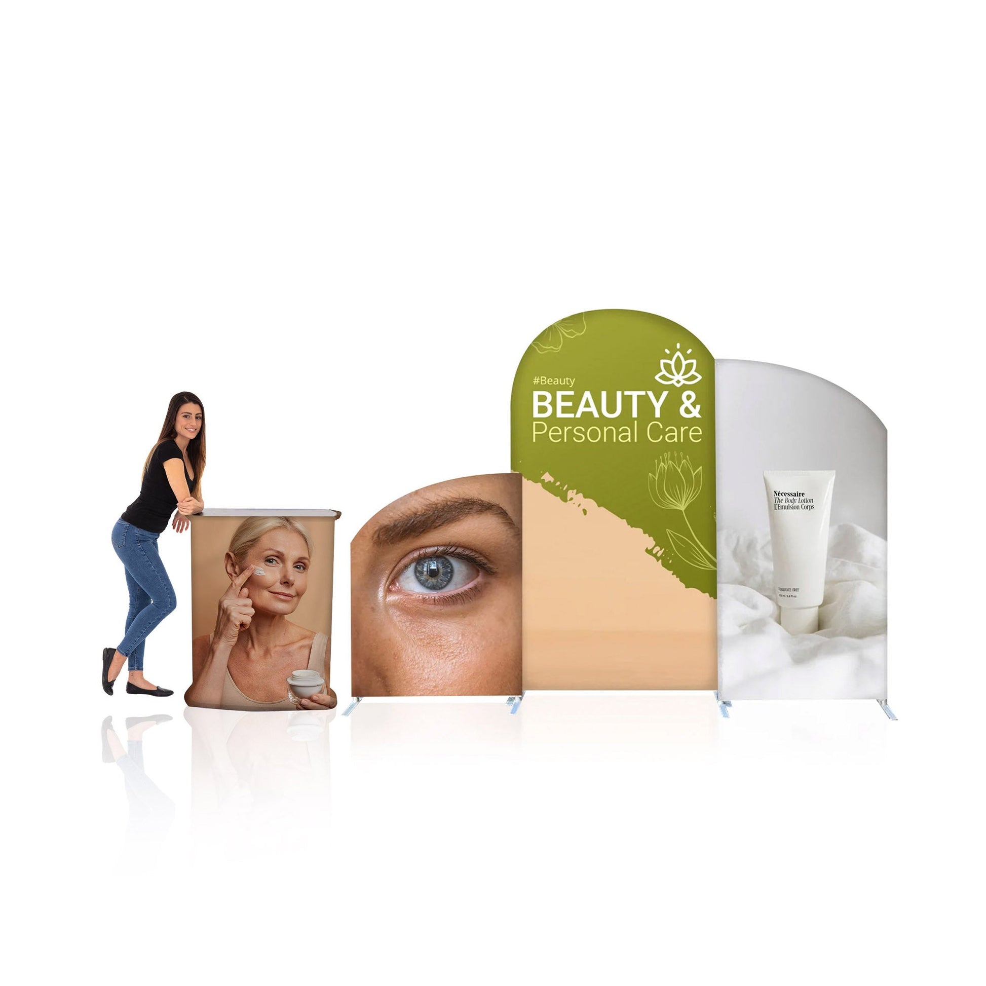 Let’s get creative! With this kit, you get the luxury of having multiple shape and size displays to help get your message across through the clutter. This kit features our Modular Tension Fabric Display which includes 3 different sizes and shapes as well as our HassleFree™ Square Counter Display.